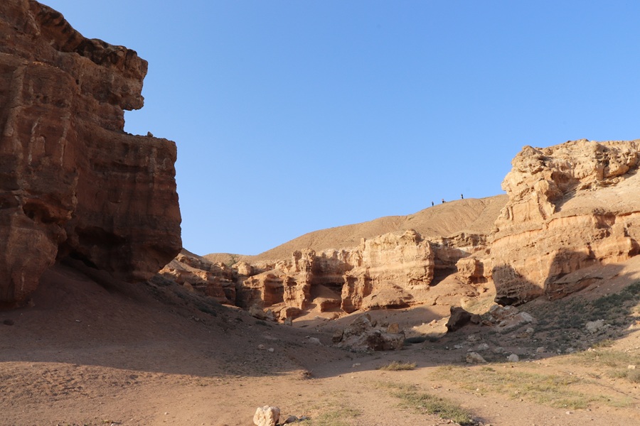 『カザフスタンのグランドキャニオン』と呼ばれる渓谷。谷間を2キロほど散策することができます。巨大な赤い岩壁は大迫力です。