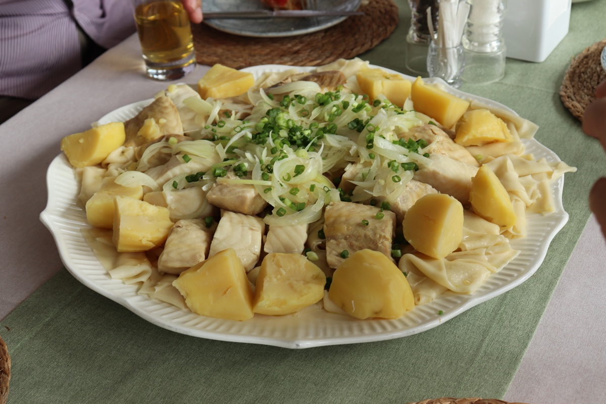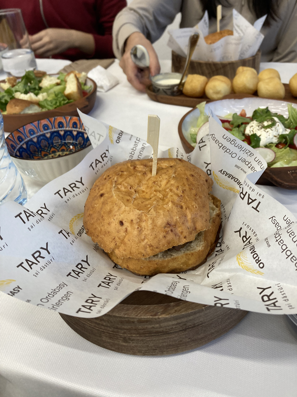 アクタウ名物、チョウザメのベシュバルマクを食べました。