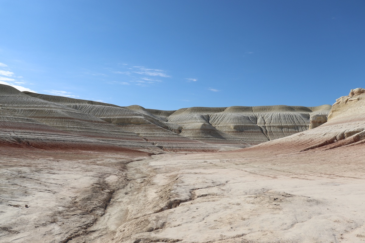 鉄を含んだ赤い層と、石灰の白い層などが交互に重なり、その見た目から『ティラミス』と呼ばれます。どこまでも続く地層の丘。観光客もほとんどおらず、無音の不思議な世界でした。