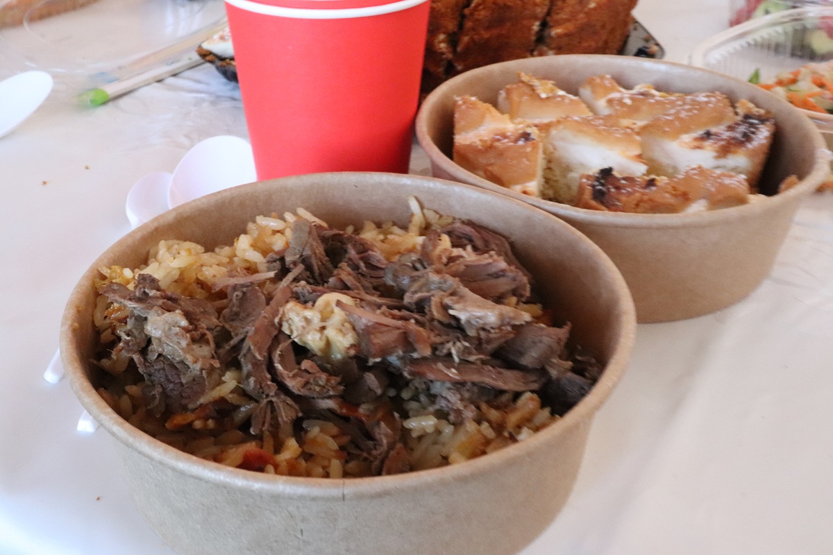 ここでお昼休憩。ジャナオゼンのカフェで調達したプロフをいただきます。うまい!