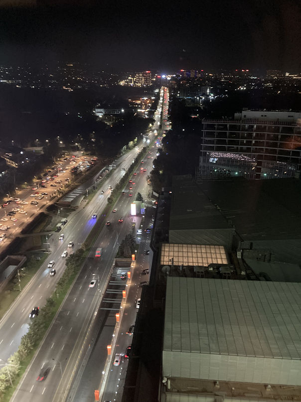 アルマトイで一番高い建物。窓から見える夜景がきれいでした。