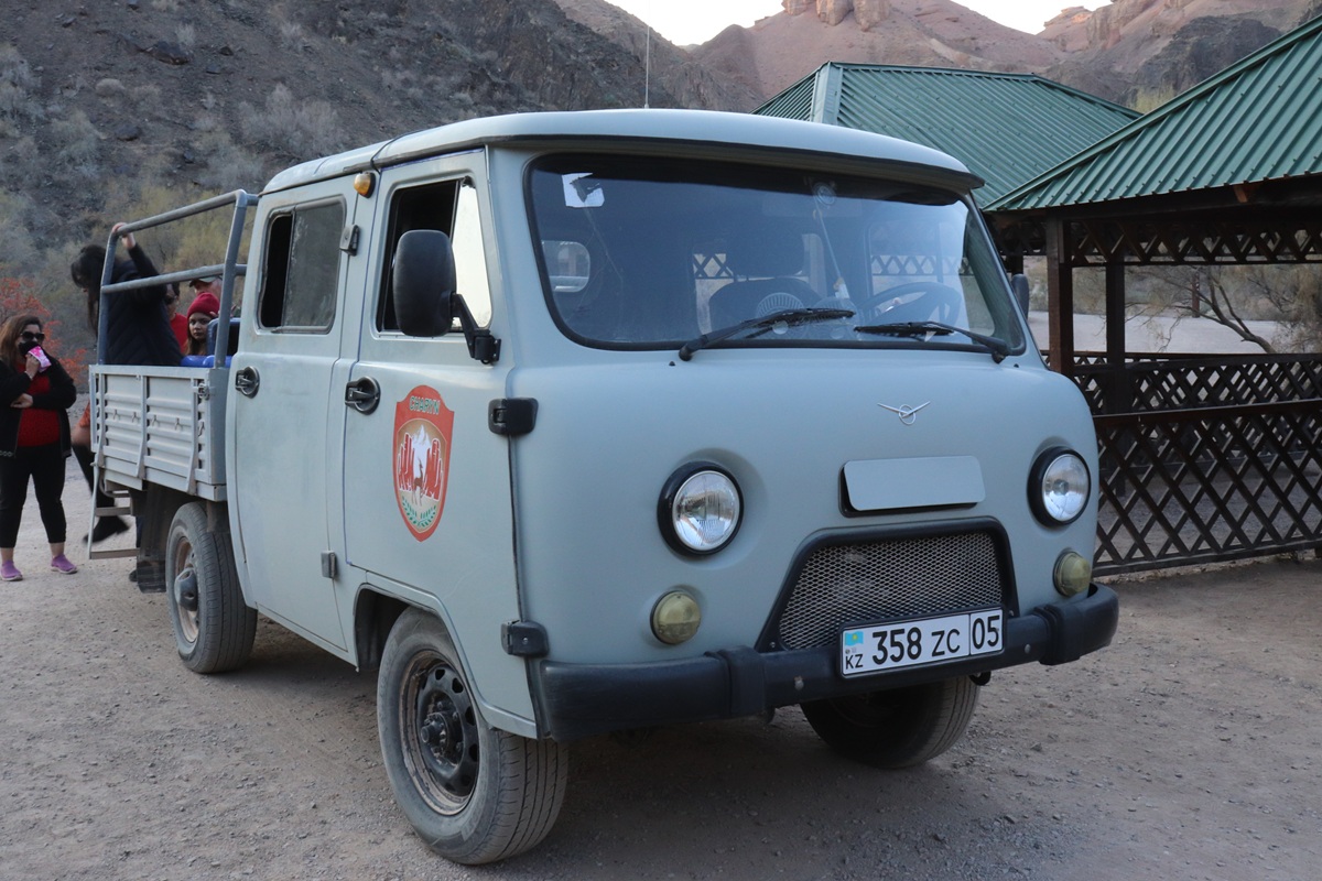 帰りはソ連製のトラックUAZに乗って渓谷の入口まで戻ることができます。