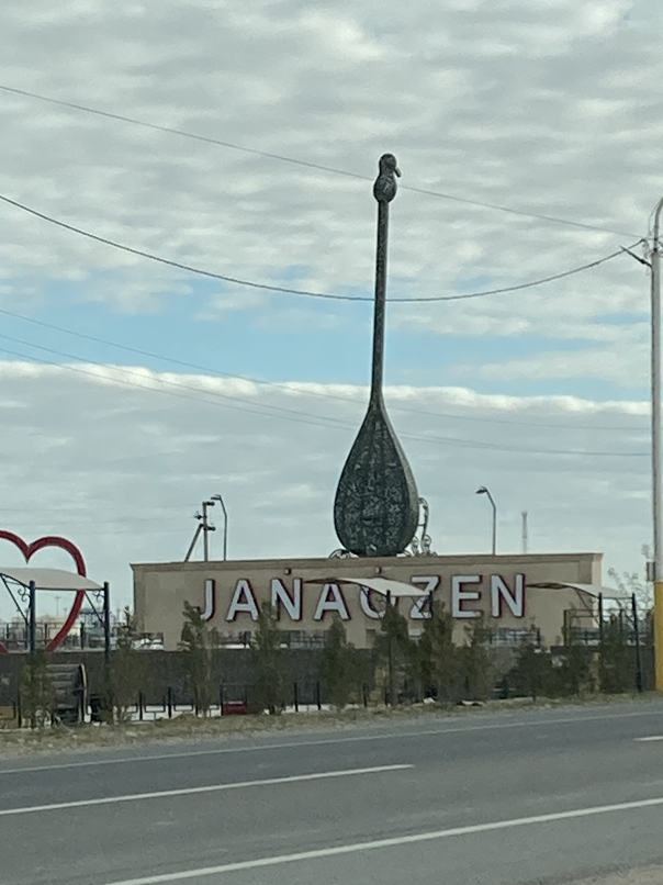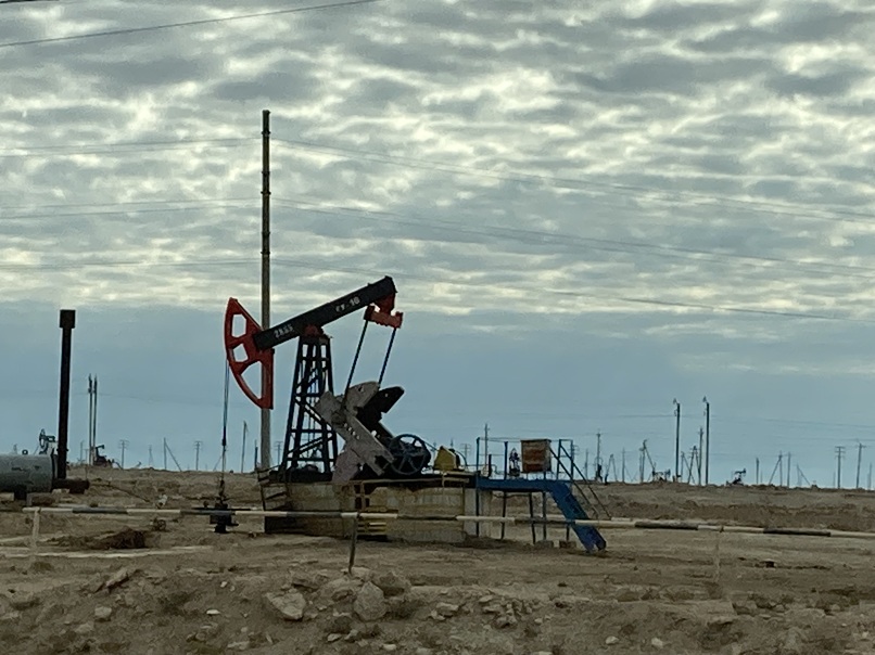 ジャナオゼンは石油採掘の街。郊外に出ると、石油の採掘機がたくさん並ぶ荒野をみることができます。