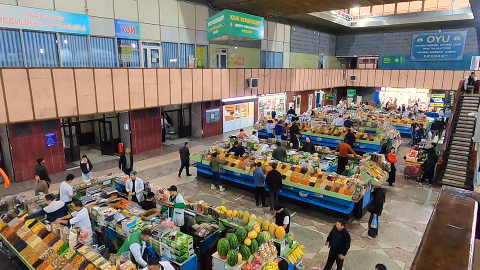 アルマトイで一番大きな市場。地元の人の買い物はもちろん、観光客にも人気のスポット。