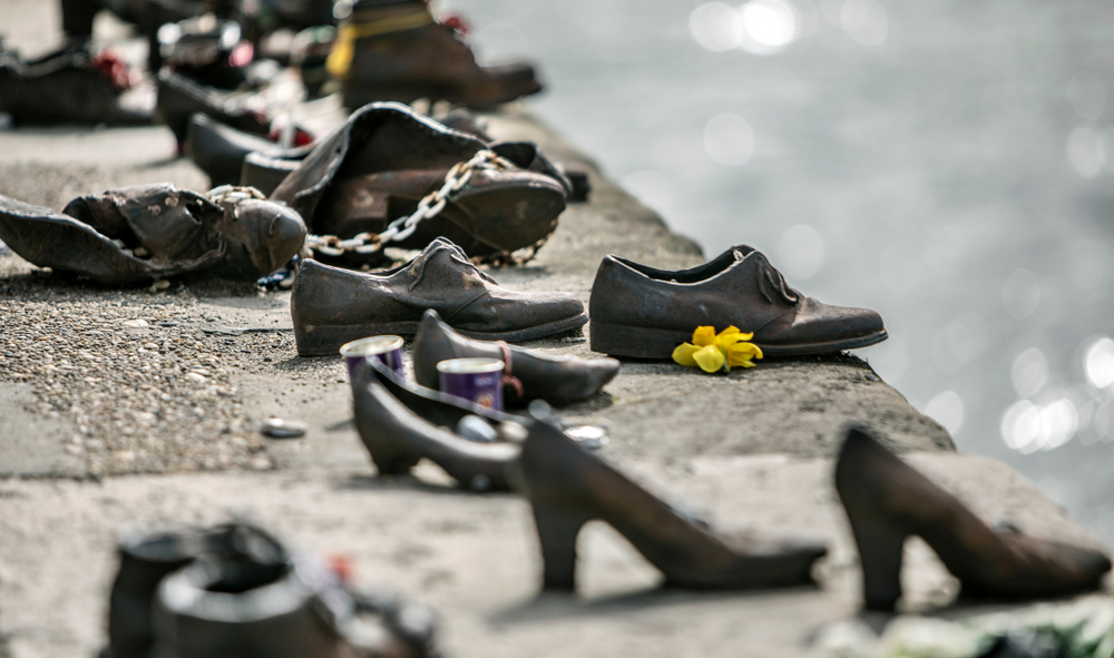 第二次世界大戦中、ナチスドイツの支援を得てハンガリーを統治していた極右政党に虐殺された人々の追悼碑です。ユダヤ人をはじめとした3500人が、当時貴重だった靴を脱がされ、処刑されドナウ川に捨てられたという痛ましい歴史をもとに制作されました。
